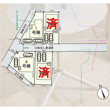 号棟番号:4号棟 事項】※太陽光発電設備が設置された分譲戸建住宅となります。別途東京ガスとの間でサービス利用契約を締結いただきます。※契約期間:10年 ※月額料助成金交付時0円 ※詳細は担当営業所までお問合わせください。 法第22条区域 地区計画区域 建物面積に別途ルーフバルコニー約6.48平米有 駐車場2台:車種による 北側法外通路:法43条2項2号許可による |